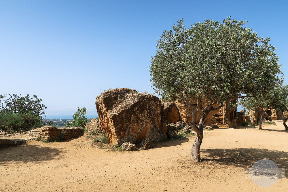 Olivenbaum und Stadtmauer im Tal der Tempel in Agrigent
