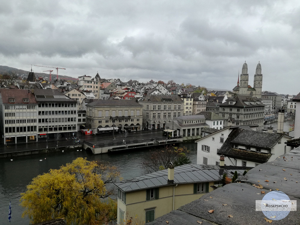 Blick vom Lindenhof auf Großmünster und Rathaus
