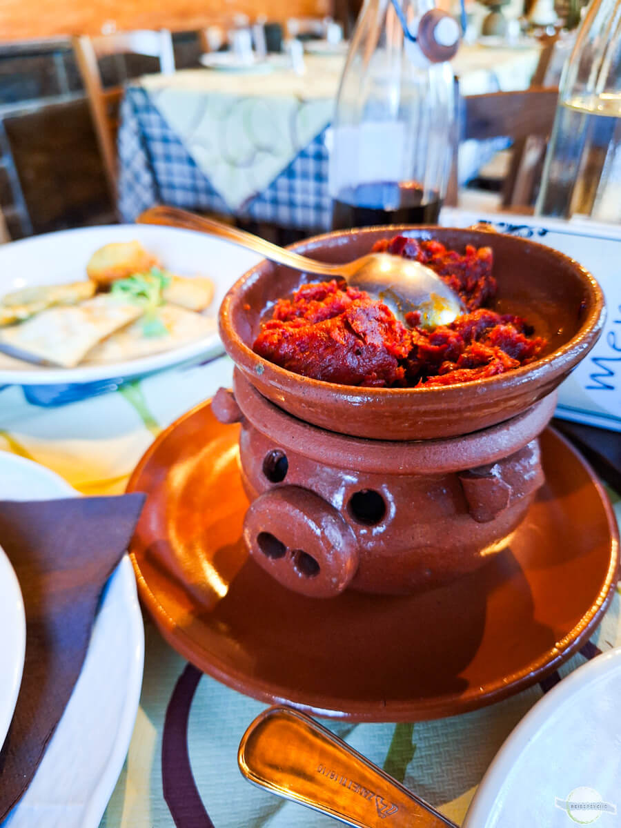 - ‚Nduja: Eine weiche, leuchtend rote, scharfe Streichwurst.