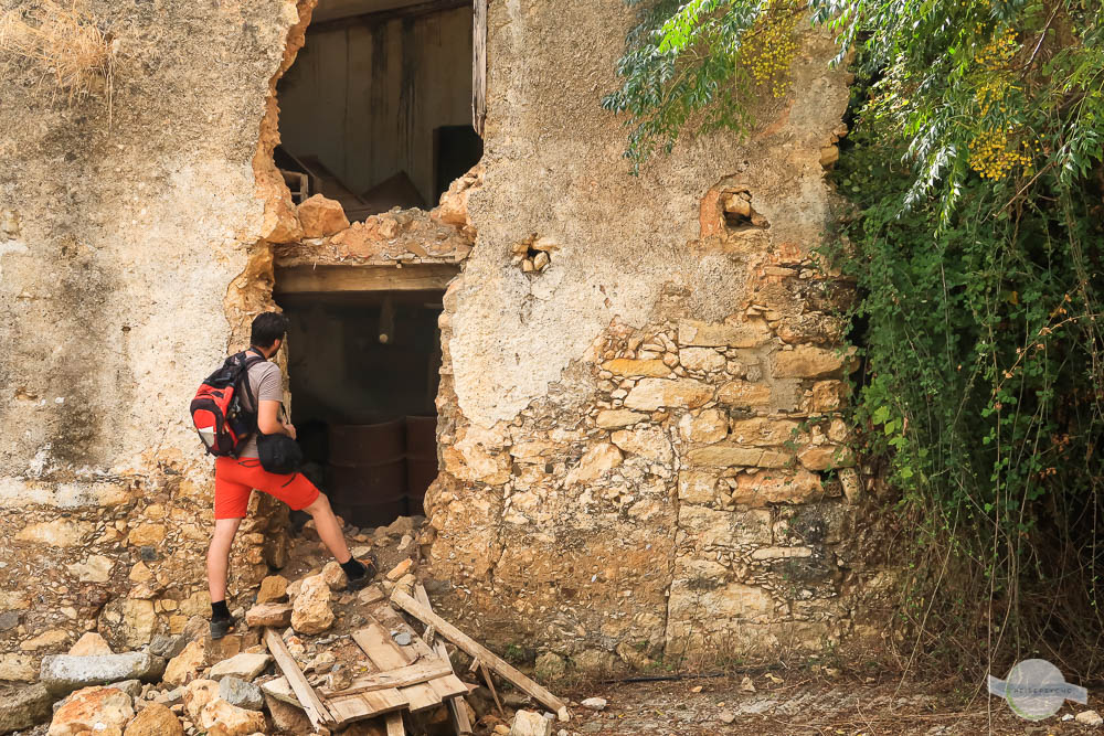 Mann steht vor Ruine auf Kreta