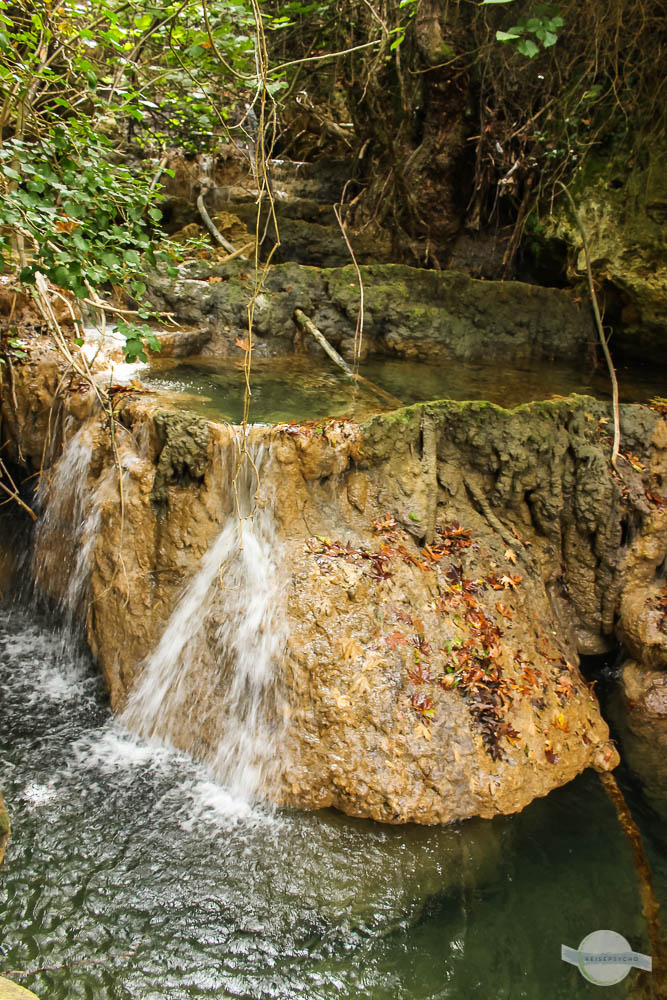 Die Kaskaden des Baches, der durch die Myli-Schlucht rauscht