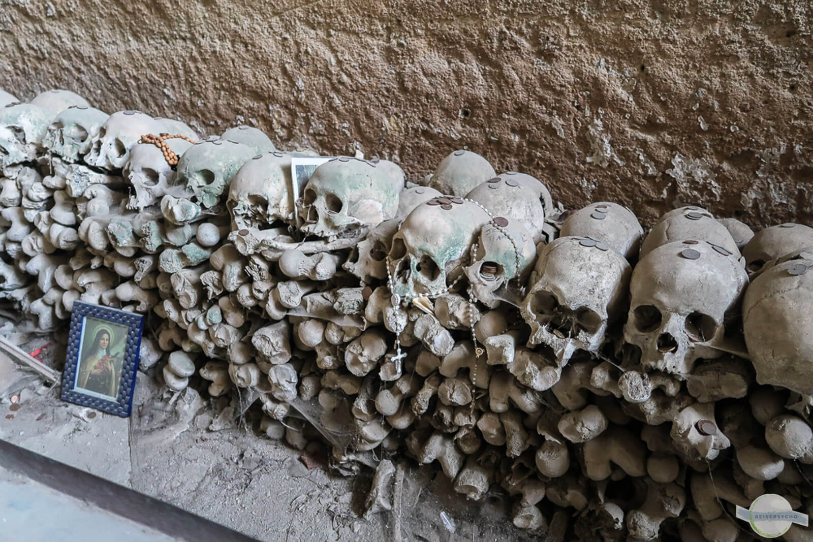 Sauber geschlichtet liegen die Knochen und Schädel heute auf diesem seltsamen Friedhof
