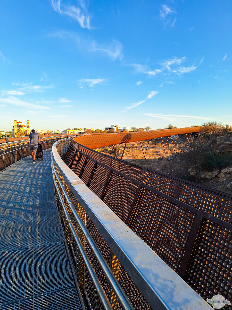 Die stylische Brücke führt sicher rauf auf den Hügel