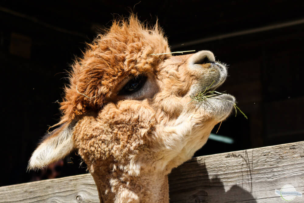 Sehr fotogene Alpakas gibt es hier am Hof